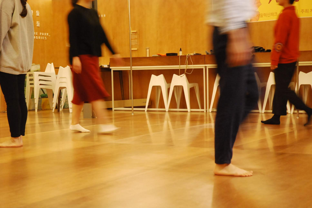 발가락, 발바닥이 바닥에 닫는 감각에 집중해서 걸어보고, 눈을 감고 손가락 하나의 이끌림에 끌려가보고